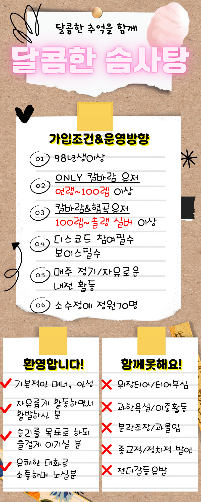 - 목표 정원 75명, 현 67명, 85~98년생 가입 가능