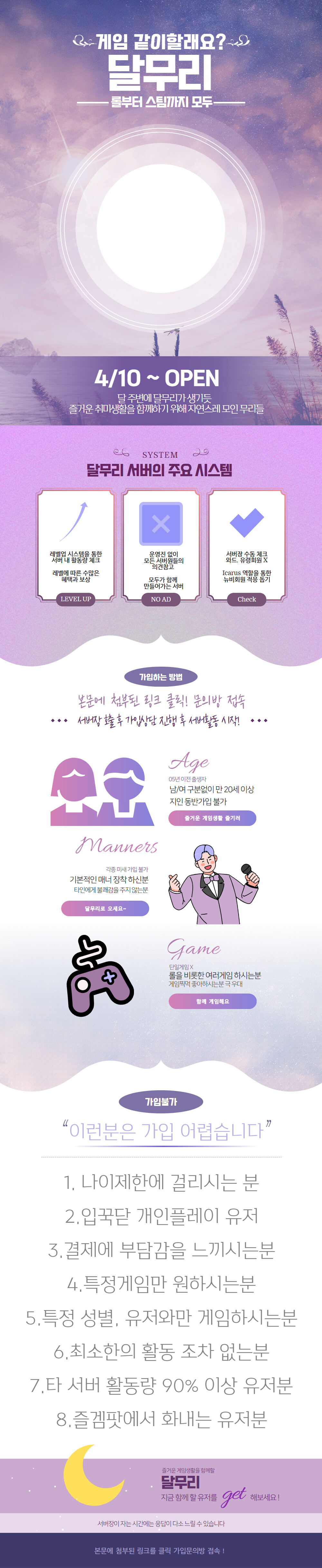 [티어제한/닉변X] 4월10일 OPEN 만20세이상 50Lv 이상 롤부터 각종 스팀게임까지 🌙달무리🌙 로 놀러오세요