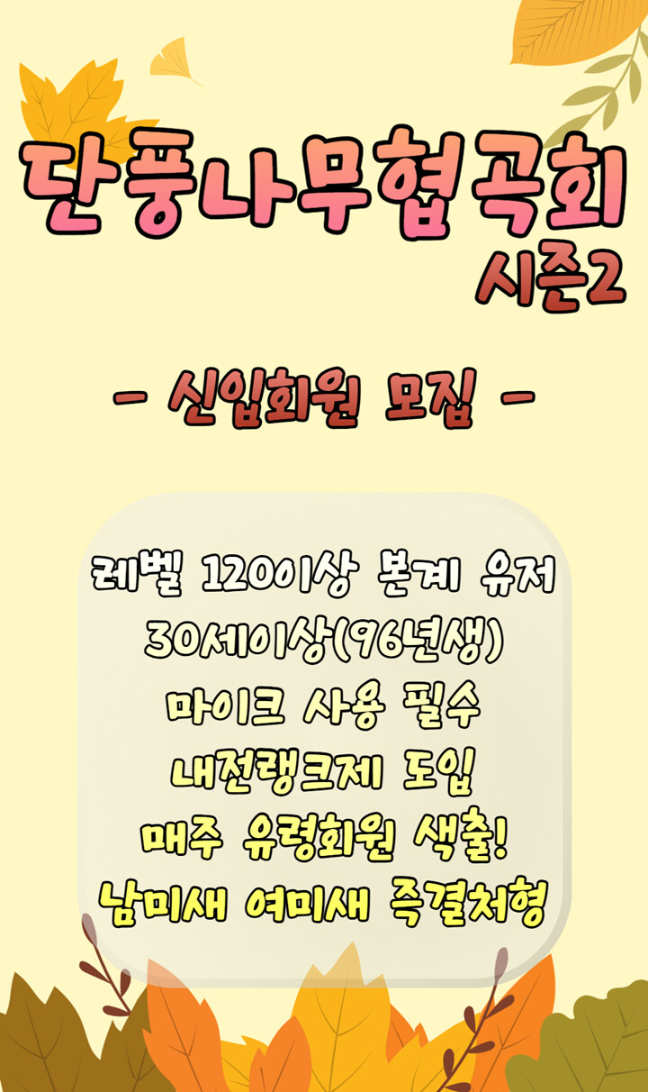 [출처] ⭐️신생방⭐️롤 3040 단풍나무 시즌2 신입 모집중입니다! (리그오브레전드 한국커뮤니티 - LoLKor) | 작성자 단풍나무2