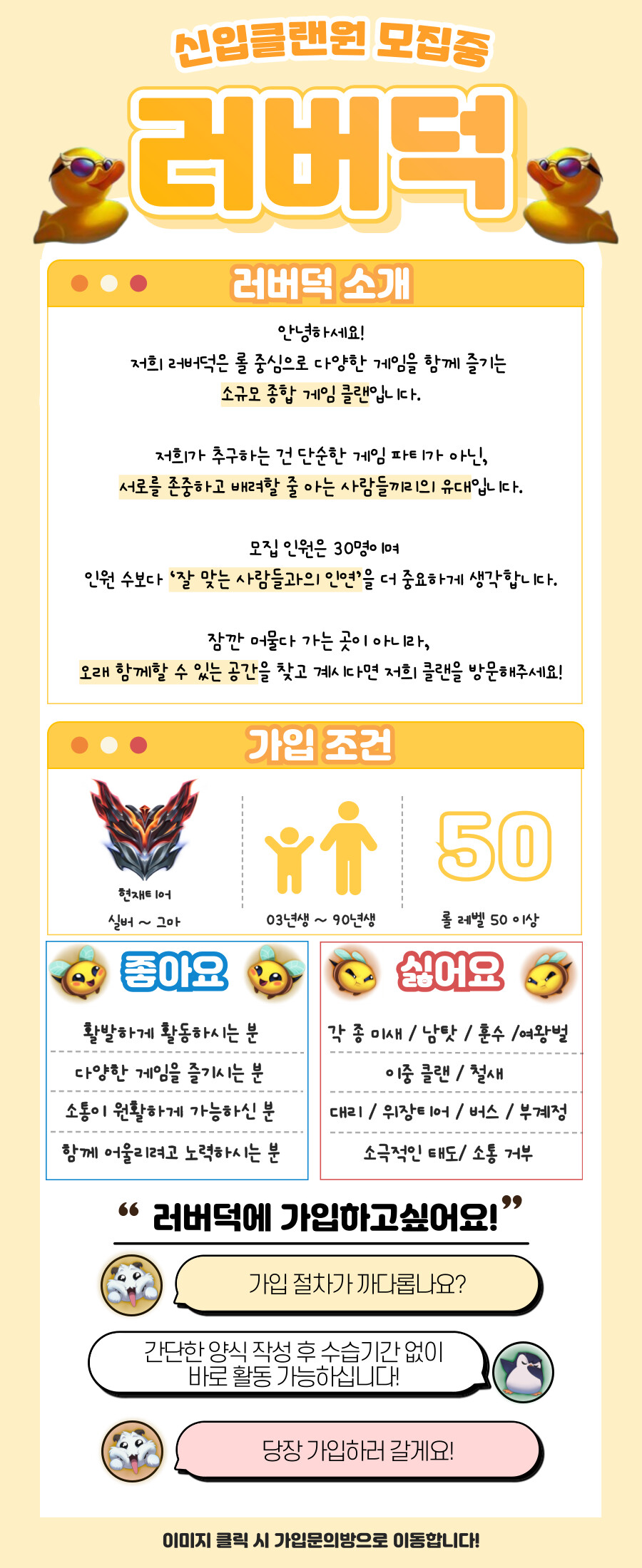 🦆 러버덕 — 소수 정예 친목 롤 클랜, 초대합니다! 🦆