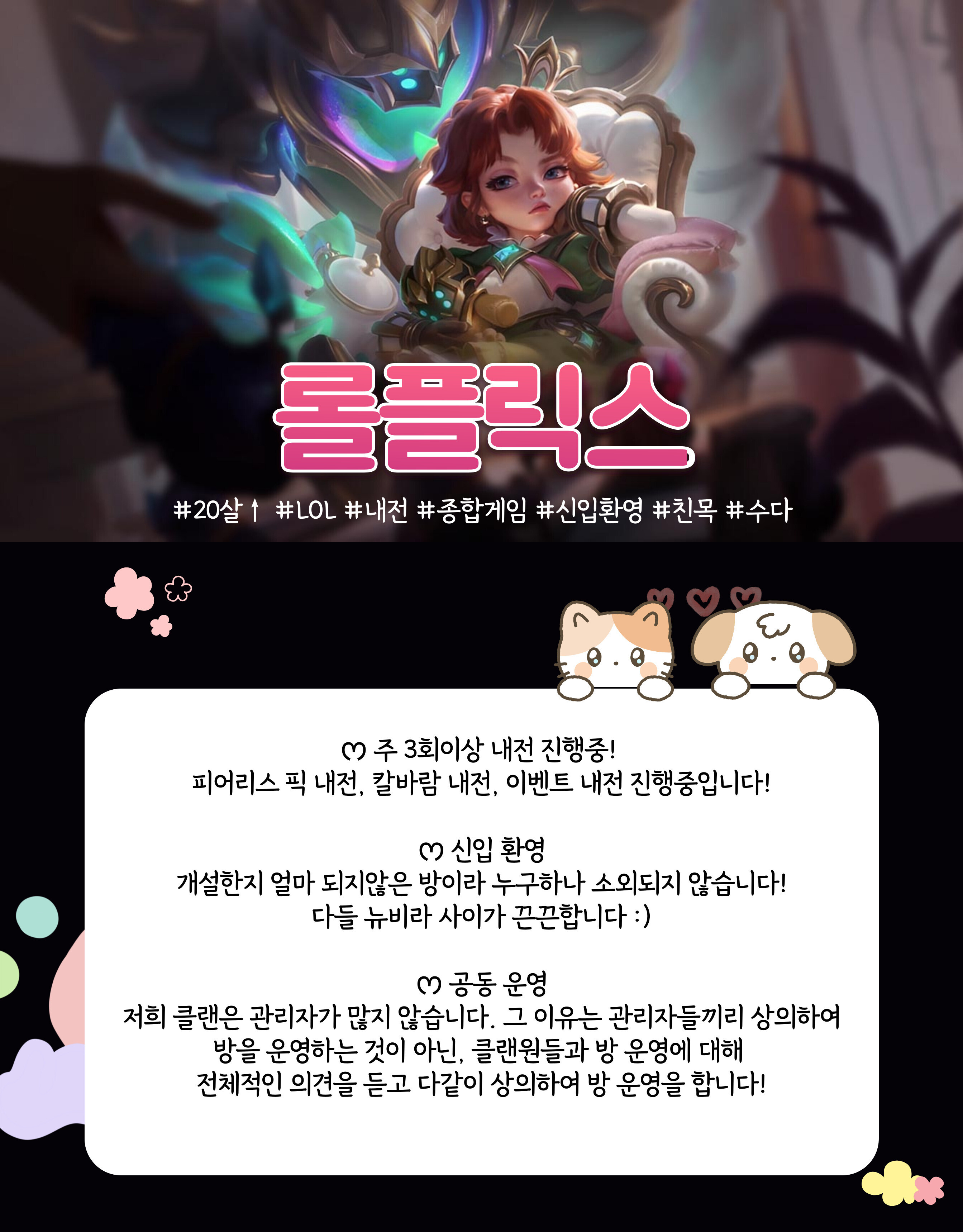 💖롤 종합게임💖 성인 신생클랜 《롤플릭스》