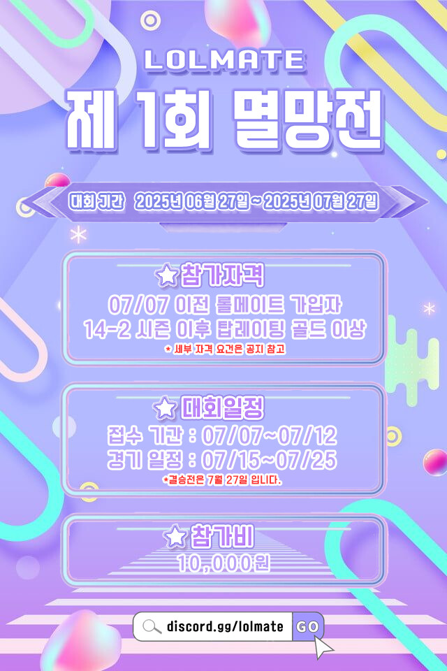 🌟 성인 전용 디스코드 롤 내전 서버, 롤메이트입니다😍