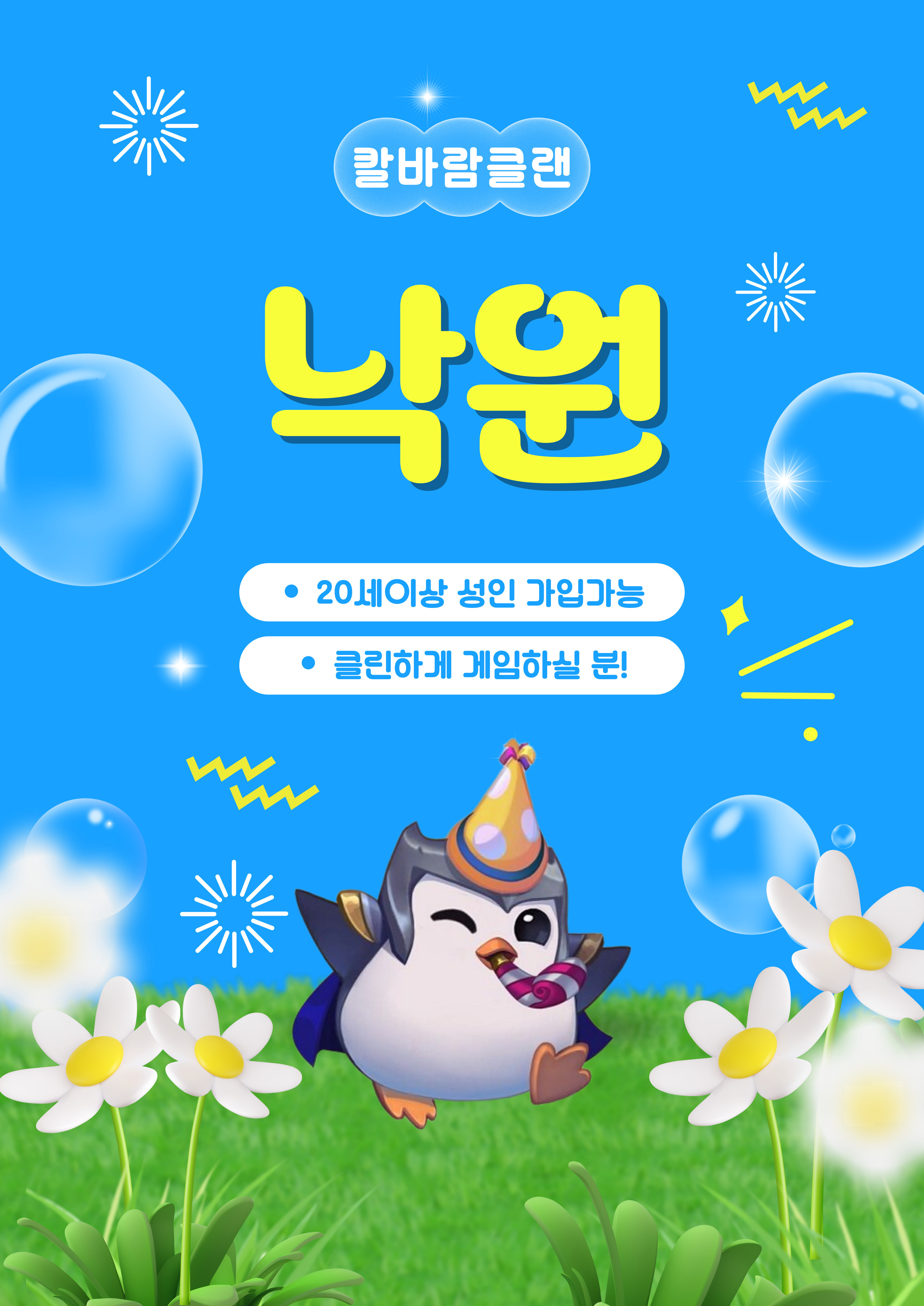 안녕하세요! 낙원 클랜 부방장 입니다. 같이 칼바람하실 클린유저분들을 모집하고 있어요!🥰