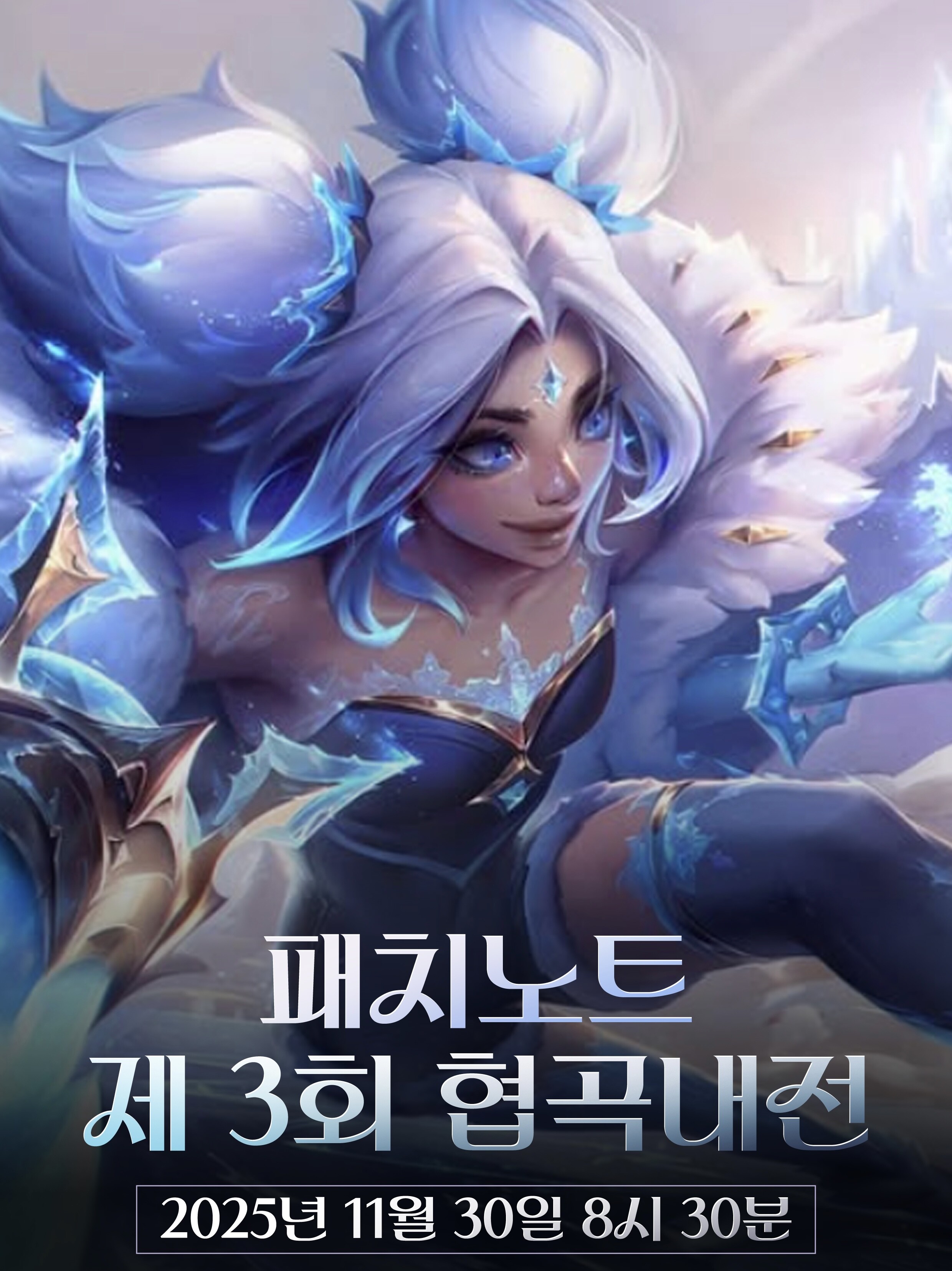 혼자 게임하는 거 지겨우셨나요? 패치노트 클랜에서 찐친들과 함께해요! 혹시 아직도 게임 속에서 혼자 외롭게 헤매고 있나요? 😥 저희 패치노트 클랜은 약 50여명 정예 멤버들이 끈끈한 우정을 기반으로 매일매일 웃음 가득한 게임 라이프를 만들어가고 있어요! 단순한 클랜이 아닌, 함께 성장하고 즐거움을 나누는 '찐친' 커뮤니티를 찾고 있다면 바로 여기예요! ✨ 패치노트 클랜, 이런 점이 특별해요! ✨ 솔플은 이제 그만! 😤 언제든 원하는 팀플 가능! 📢 내전, 일반, 자유 랭크, 칼바람 파티가 늘 활짝 열려 있어요. 불타는 금요일 밤! 🔥 한 주간 쌓인 스트레스를 칼바람 내전으로 시원하게 날려버리세요! 시끌벅적한 보이스는 기본! 주말은 클랜 대항전! ⚔️ 토/일 저녁, 클랜원 모두가 참여하는 는 협곡 내전에서 찰떡같은 팀워크를 자랑하며 승리의 쾌감을 맛봐요! 함께 웃고 성장하며 새로운 게임 인생을 시작하고 싶다면, 망설이지 마세요! 패치노트 클랜의 문은 언제나 활짝 열려 있습니다.새로운 가족을 기다립니다! 💖 👇 지금 바로 패치노트 클랜 합류하기! 👇