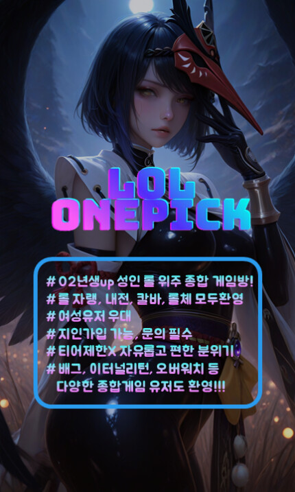 💜신생롤 LoLOnePick💜롤원픽 신생30대롤클랜 클랜원 모집합니다. 🎮 롤원픽 클랜 모집 🎮 안녕하세요! 02년생 이상 성인 유저만을 위한 롤원픽 클랜입니다. 롤을 사랑하는 모든 유저들, 그리고 다양한 종합게임을 즐기는 분들을 위한 열린 공간입니다. 누구나 편하게 함께 할 수 있는 클랜을 만들고 있습니다💜 💜