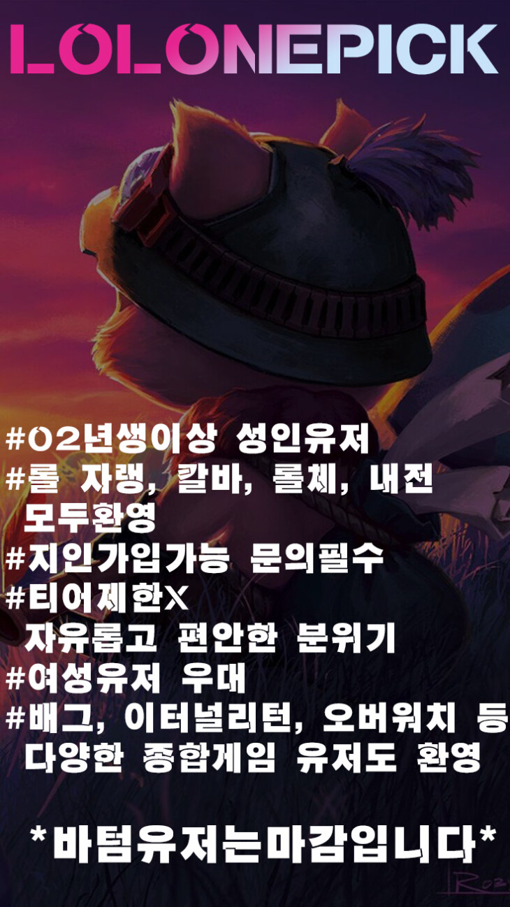 💜LOLONEPICK💜 초창기부터 같이하실 클랜원을 모십니당💜