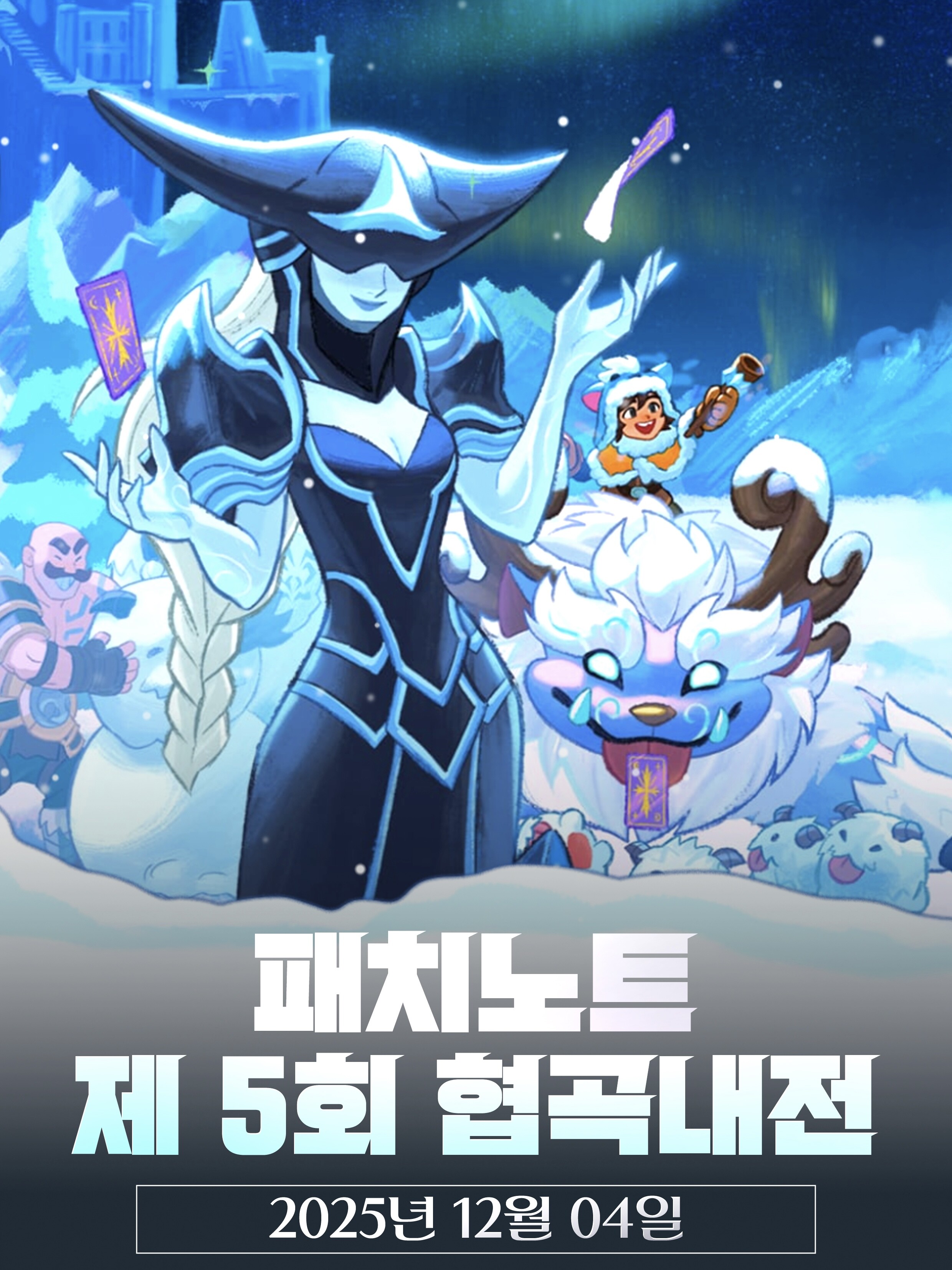 🎮 솔플은 이제 그만! 언제든 환영받는 팀플 내전, 일반 게임, 자유 랭크, 칼바람, 듀오랭 늘 열려 있어요. 접속만 해도 팀원들과 함께 즐길 수 있답니다! 🔥 불타는 금요일 밤! 스트레스를 날려버릴 짜릿한 테마 내전 (실제 사용된 상단 이미지 첨부) 시끌벅적한 보이스와 함께 칼바람 내전으로 한 주 스트레스를 시원하게 날려요. 진짜 금요일 밤을 즐겨보세요! ⚔️ 주말은 패치노트 대항전! 환상 팀워크 뽐내기 주말엔 내전ㄱ?즉흥 협곡 내전도 진행되고, 주기적으로 열리는 내전을 패치노트방에서 짜릿한 승리의 쾌감을 만끽하세요.