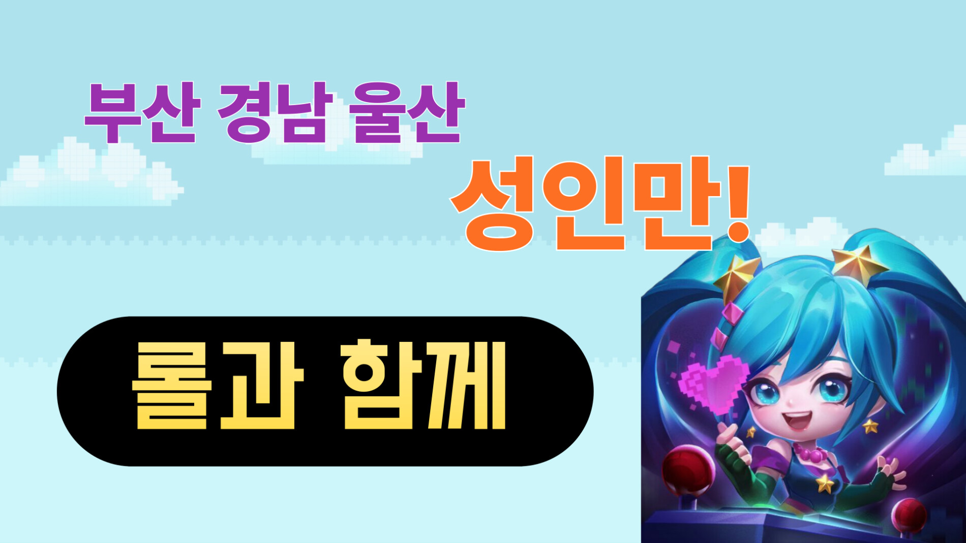 신입 대환영!! 부산, 경남, 울산 거주중이신 성인분들 모십니다~ 편안한 친구들 단톡방 같은 느낌의 소수정예 오픈톡방을 찾고있다면! 바로여기~ 매주 목요일! 내전 진행중~ ! 타지에 오셔서 외로우신분, 술 좋아하시는 분 들도 벙에서 함께 지내보아요! 특 히!!! 거제 사람 원츄~~ 방장 거제사람인데 거제도에 이렇게 게임하는 사람이 없나 ㅠ! 칼바람, 롤체, 솔랭, 자랭 모두모두 대환영!! 방장 존예 부방 존잘
