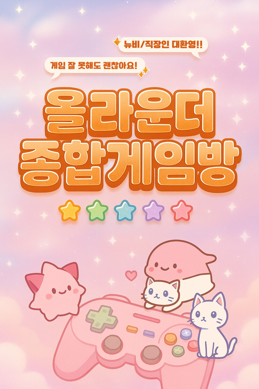 🌟 막 태어난 따끈따끈한 종합게임방 🌟 🎮 “올라운더” 🎮 성인 전용 & 07년생까지 환영 💕 게임하면서 수다 떨고, 웃고, 쉬어가는 공간이에요 🌈 비매너 ❌ 욕설 ❌ 싸움 ❌ 서로 따뜻하게 챙겨주는 분위기 🫶 뉴비도, 직장인도, 라이트 유저도 다 환영! 같이 게임하고 이야기하며 하루의 피로를 싹 날려봐요 ☕✨ 👉 지금 바로 올라운더로