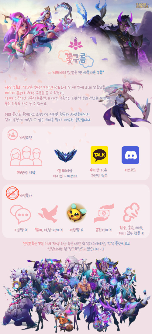 저희 클랜도 통제하고 조절하기 어려운 협곡과 사람들속에서 같이 즐겁게 게임하고 싶은 의미를 담아 개설한 클랜입니다.