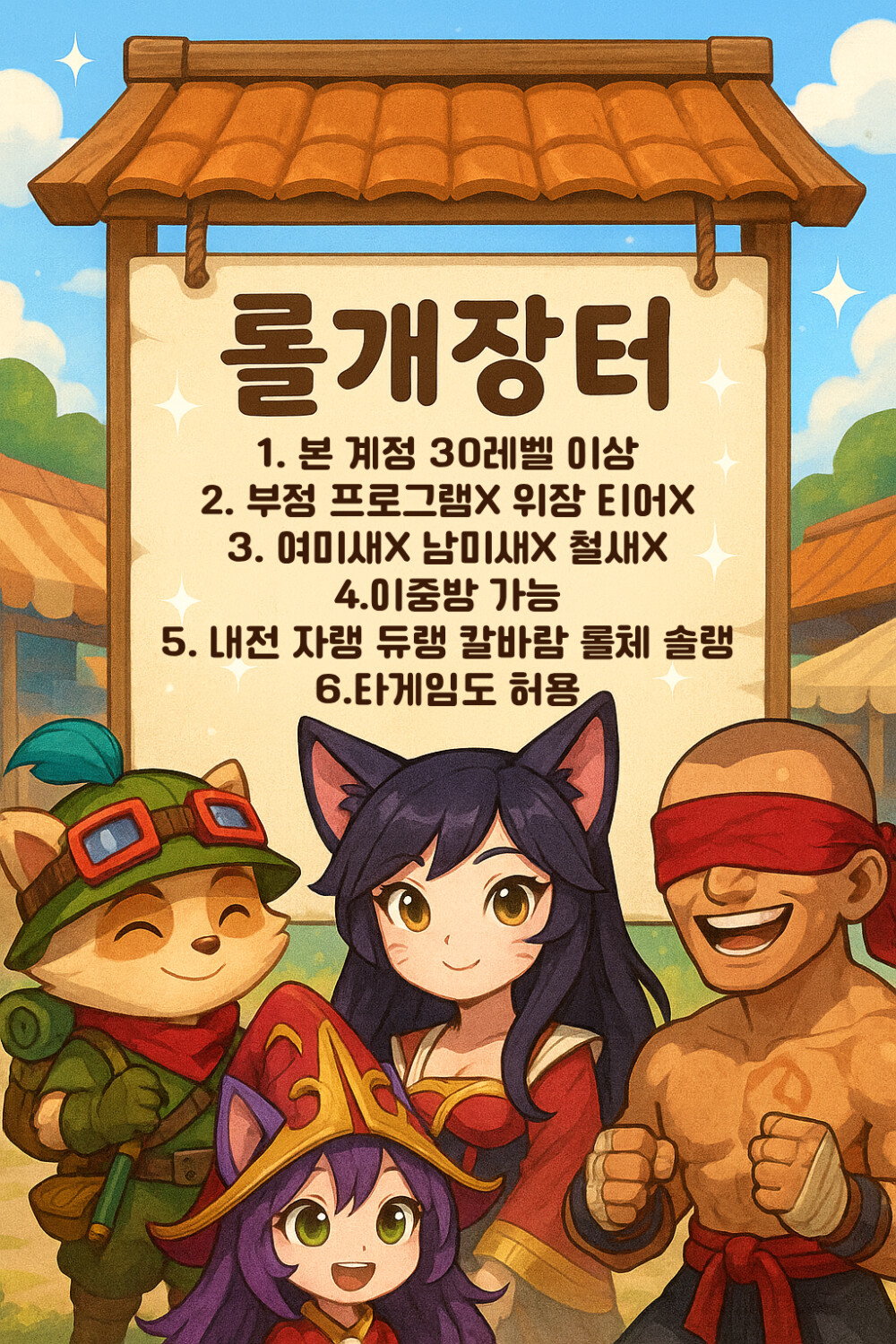 오픈 톡방 🌸✨롤개장터✨🌸 검색 후 참여 가능합니다!