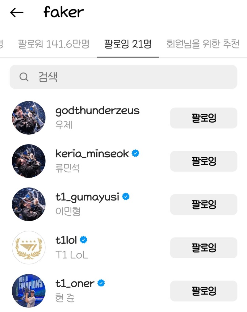 페이커 팔로잉 21로 늘어나서 보니까 제오구랑 전부 맞팔해줬네ㅋㅋ