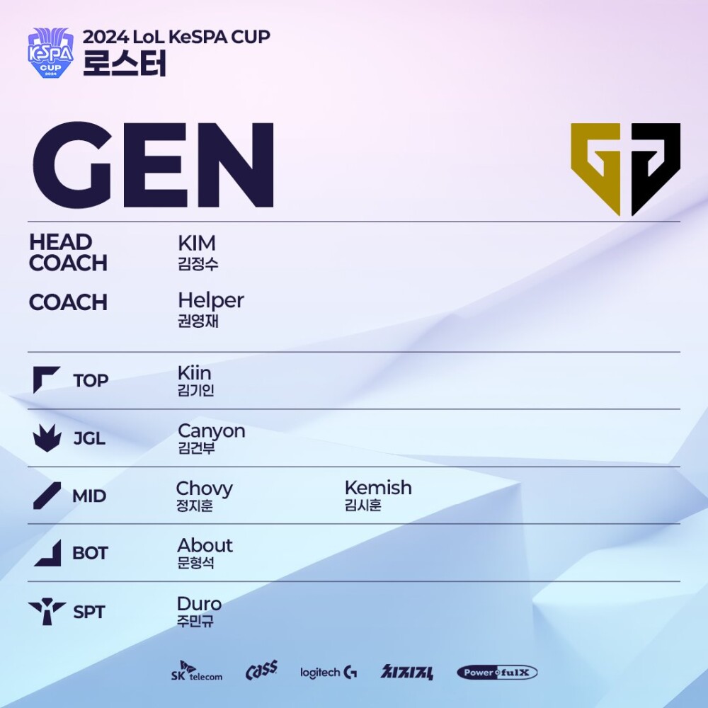 케스파컵 젠지 로스터 공개