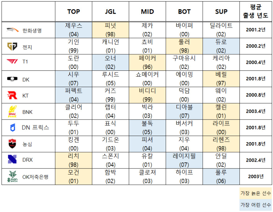 현재 LCK에서 평균 나이가 가장 높은팀은 어디일까?