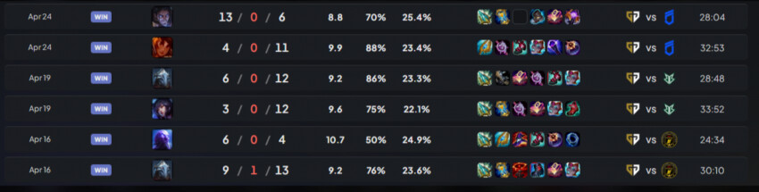 쵸비의 최근 6세트 KDA를 알아보자