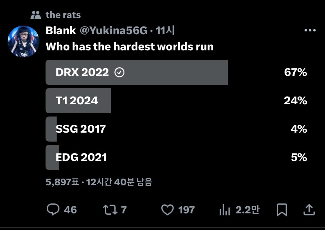 6000명이 투표한 가장 어려웠던 경기를 치룬 월즈는?