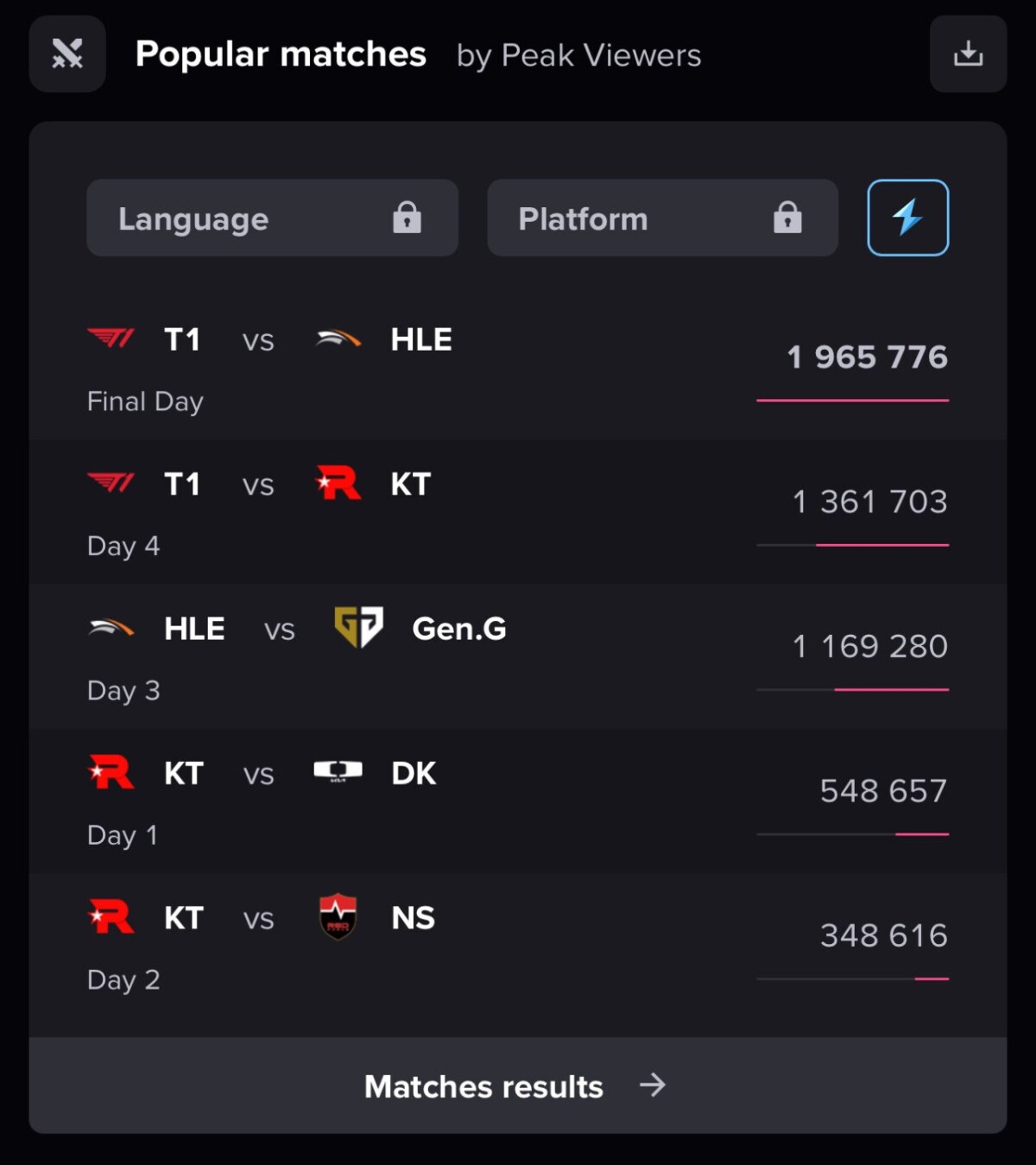 T1 vs HLE 최종 뷰어쉽 196만 찍음