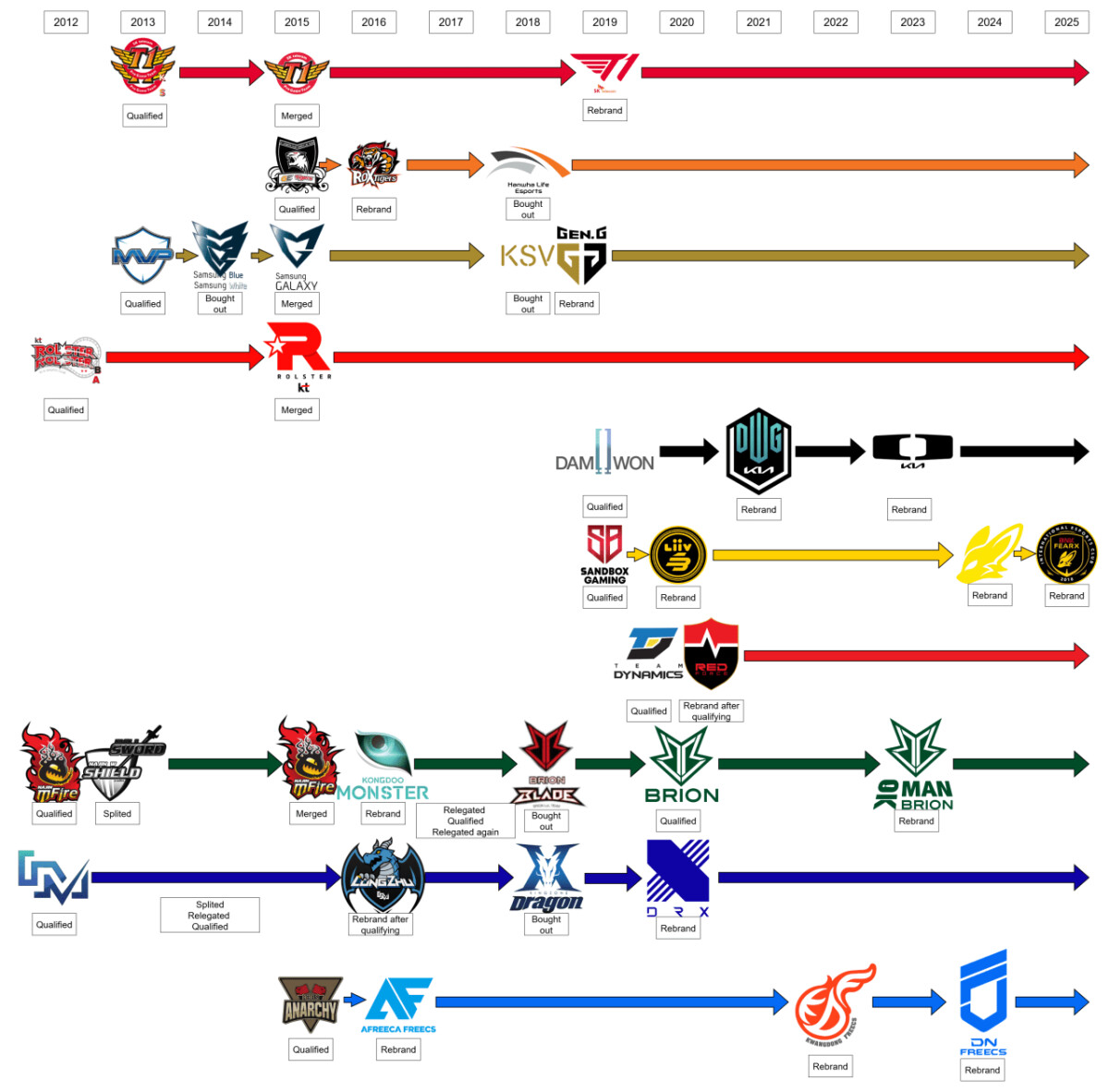 LCK 10개 팀 역사 그래프