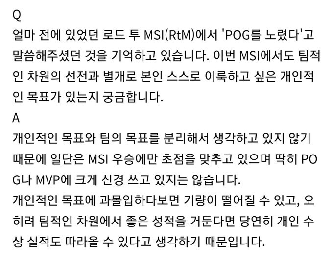 T1 Keria "개인적인 목표에 과몰입하다보면 기량이 떨어질수 있다."