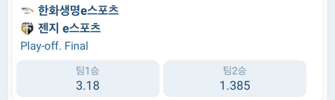lck 컵 결승전 때는 배당률 거의 반반 이였는데 이젠 젠지랑 한화 격차가 더 벌어진듯