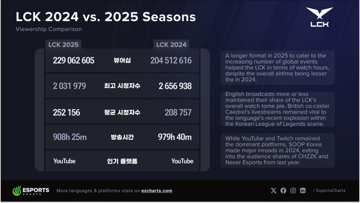 25 LCK 뷰어십 역대 이스포츠 3위 달성