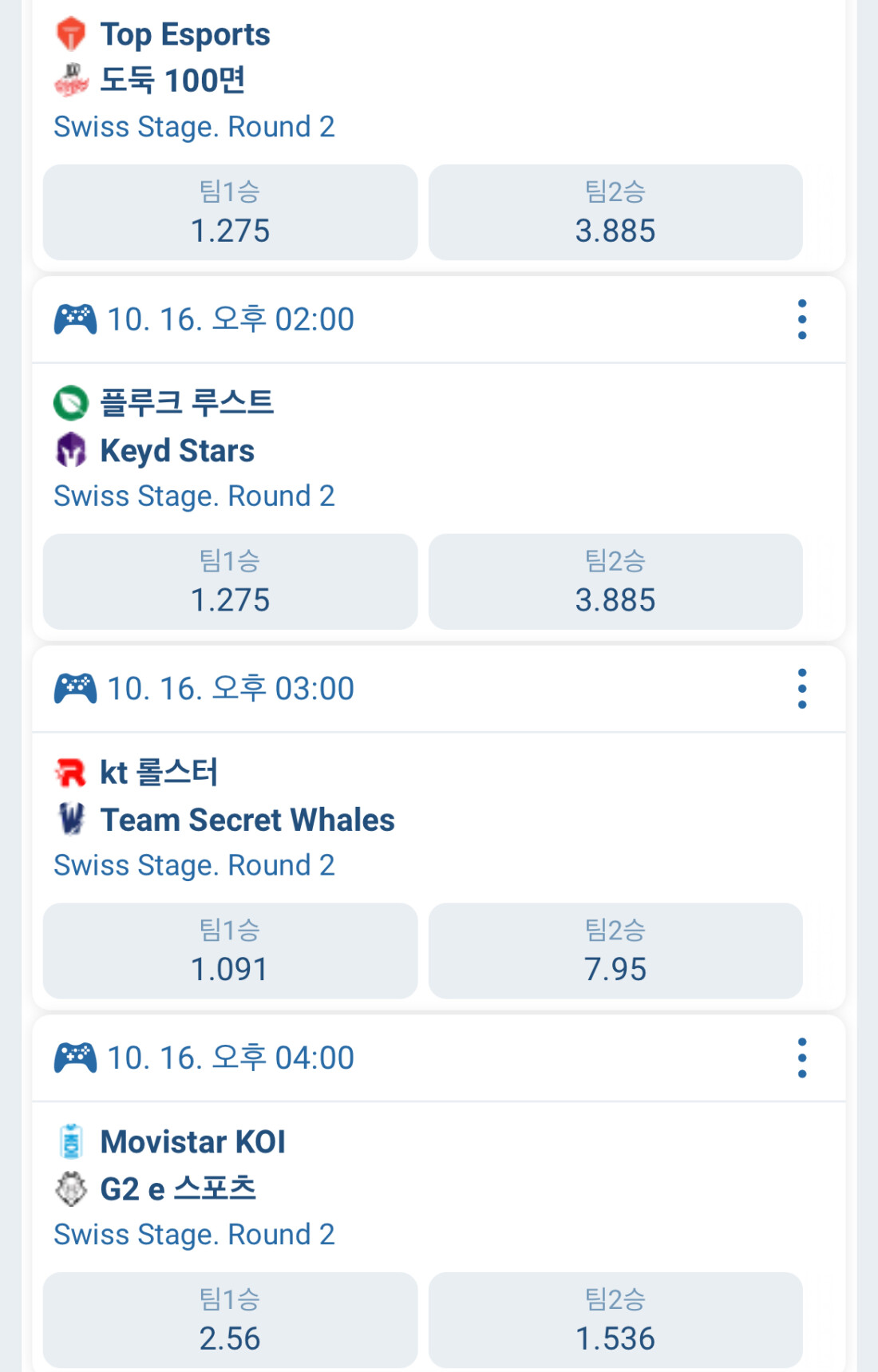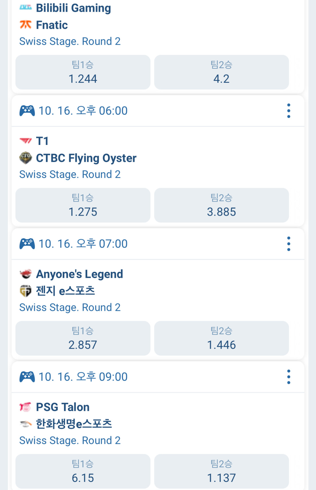 곧 시작하는 월즈 배당률