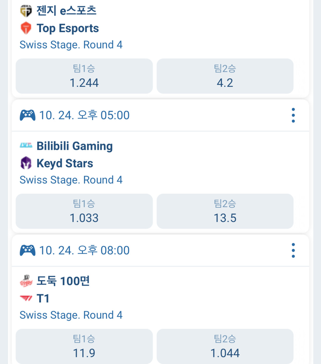 배당 보니까 blg랑 티원이 지는건 말 안되긴하네 blg랑 티원은 무조건 이기는게 정배