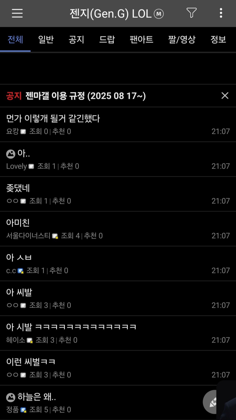 젠지한화 동시에 멘붕ㅋㅋㅋㅋㅋ