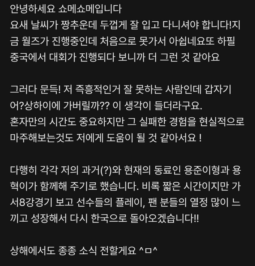 그냥 즉흥적으로 고버지랑 루시드 대리고 갔다고는 하는데 누가봐도 캐니언 응원하러 가는거 아니냐... 마음 아프네