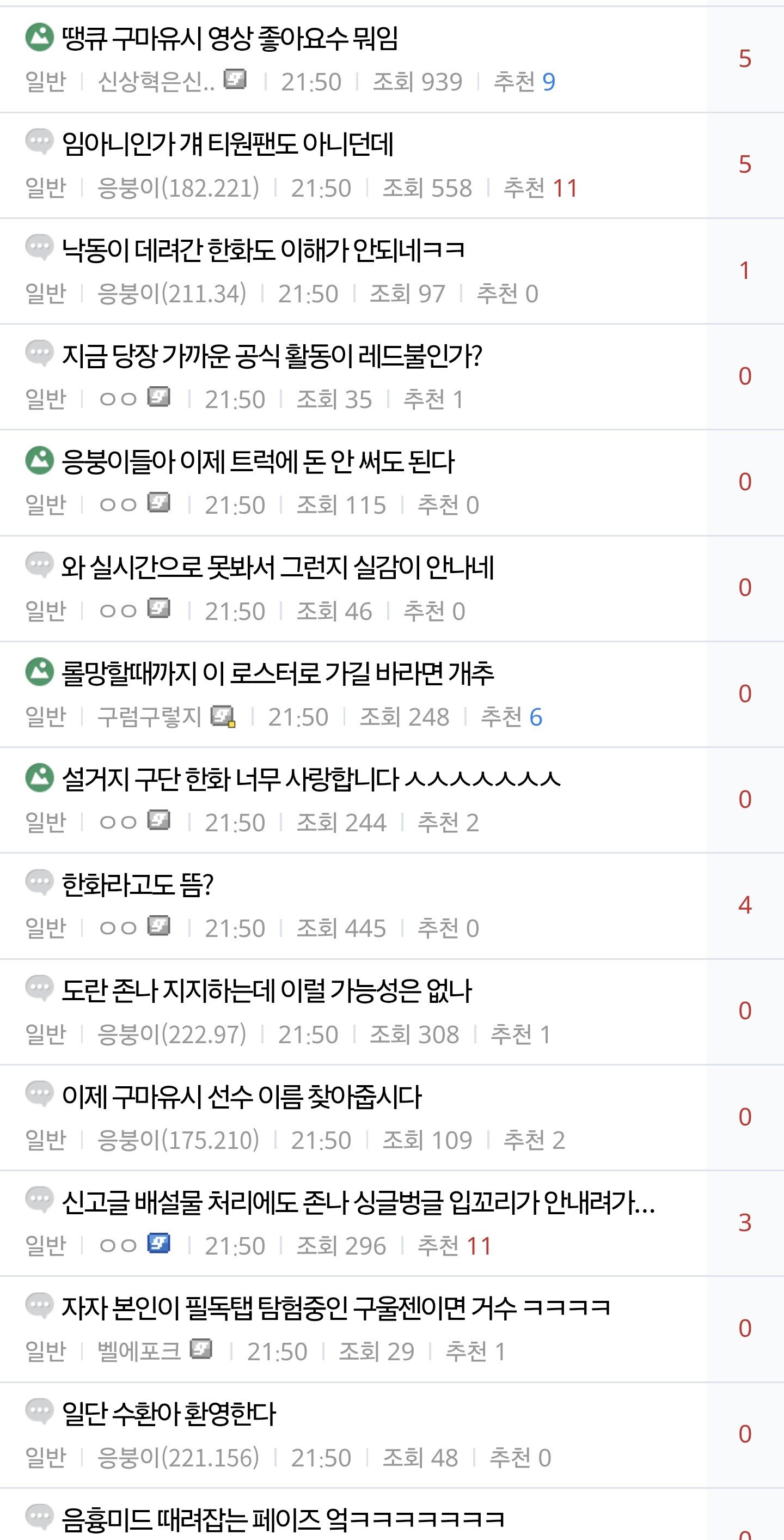 구마유시 이적해서 아쉬웠는데 티응갤 반응 보니깐 잘 떠난 듯 그 동안 구마유시가 보여준게 얼마나 되는데 티원에서 쟤네 안 막고 뭐하는건지 참... 프론트도 일도 못하는데 이참이 잘 떠난 것 같다