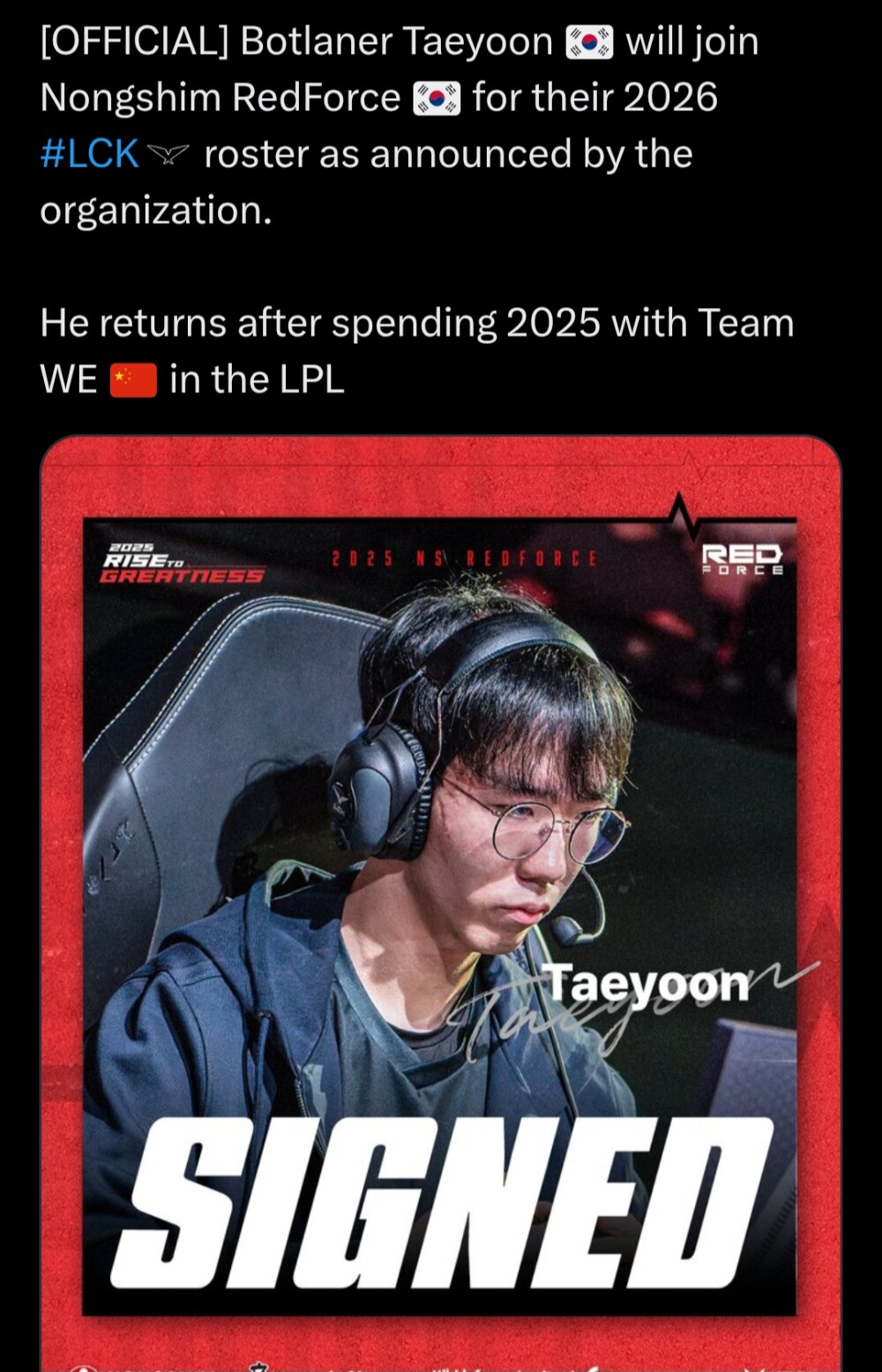 오피셜 태윤 농심 콜업