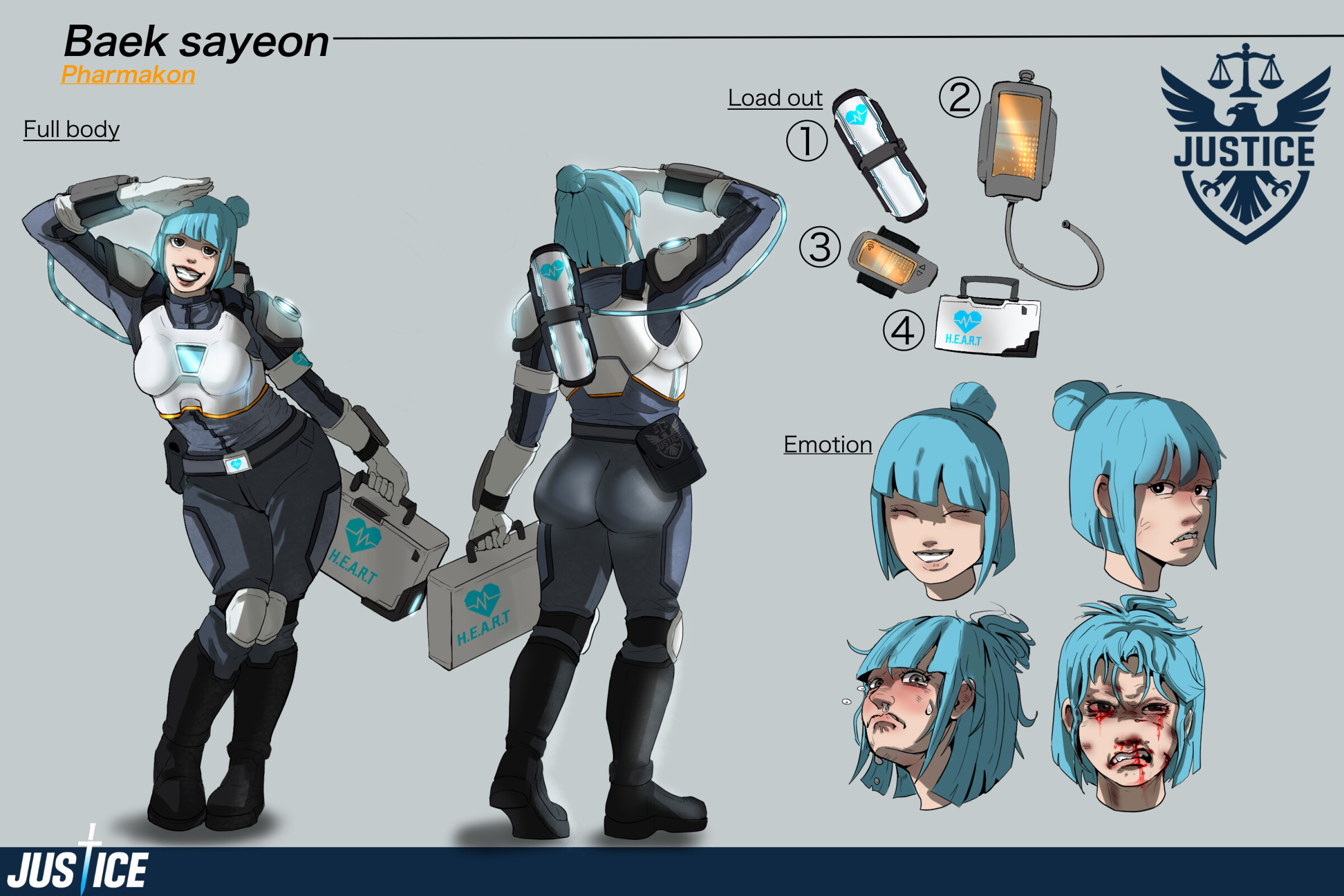 이번에 여캐(히로인) 시트입니다 도구컨셉입니다 여러분들의 평가를 듣고싶습니다 눈썹은 원래 없습니다 픽시브 있습니다 팀에겐 약을 적에겐 독을 주는 컨셉이라 1번 도구보면 알약모양의 가스통에서 가스로 치유하거나 싹다 죽입니다 전문의료인이라 존나 뛰댕겼을테니 여성적 체형에 실전 근육을 더했습니다 기존에 올린 캐릭터들과 같은 소속이기에 통일감을 주기위해 베이스(네이비색 요원복)에 메딕 요소(의료키트 하얀 장갑 화이트 슈트)를 더했습니다