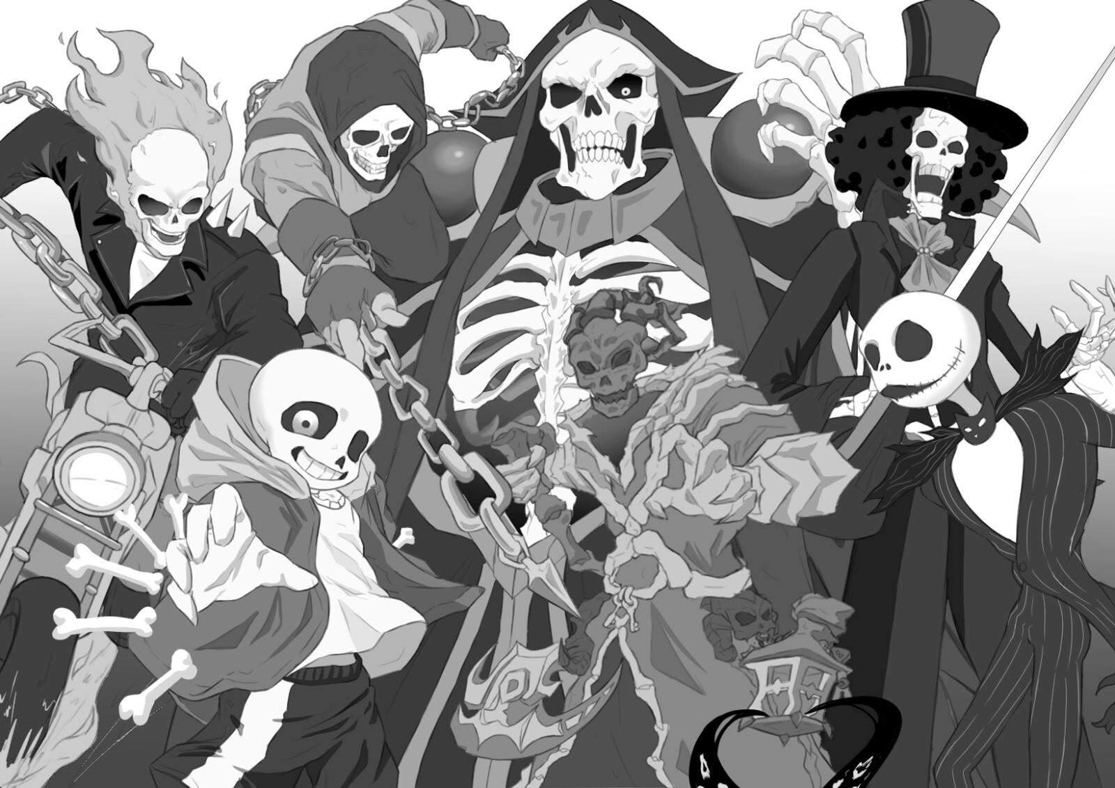 캐릭터들 : (마블)고스트라이더, (언더테일)샌즈, (모탈컴벳)스콜피온, (오버로드)아인즈, (롤)쓰레쉬, (원피스)브룩, (크리스마스의 악몽)잭