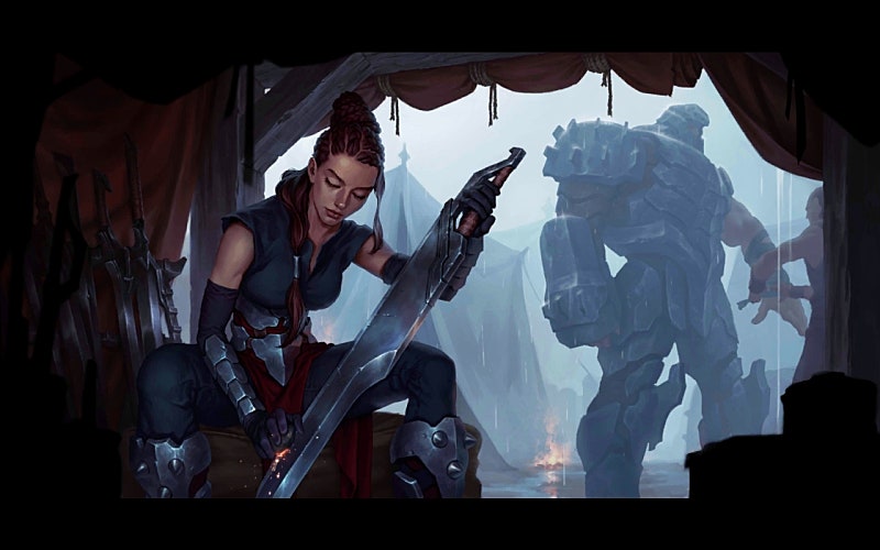 마법사들은 자신들의 전쟁에 이용하려고 산-우잘을 소환하였으나 산-우잘은 그곳의 마법사를 모두 죽여 "몰락한 밤"이라는 자신의 철퇴(무기)를 만들었습니다. 그가 학살을 하는동안