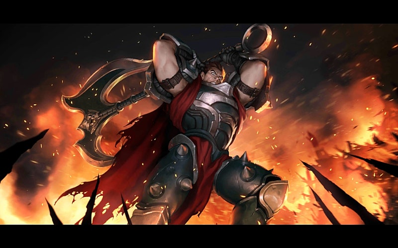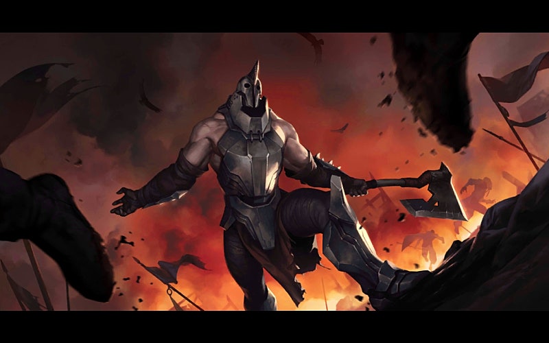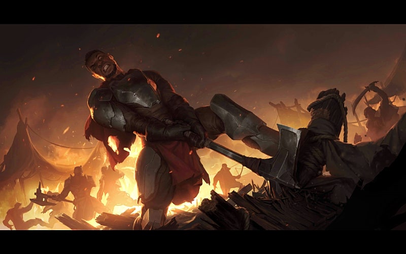 스웨인은 그때까지 자신을 지지하던 세력과 더불어 오랜 시간에 걸쳐 주의 깊고 철저하게 준비를 한 끝에, 드디어 하룻밤만에 녹서스를 장악하는 데 성공했습니다. 악마의 힘으로 신체 능력을 회복한 스웨인은 추종자들이 지켜보는 가운데 다크윌을 처치해 버렸고,