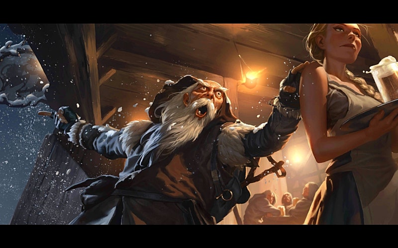 곤드레 부엉이 여관에 도착하여 설인과 재앙의 방랑자의 위험을 알리지만 사람들은 정신이 나갔다고 생각하여 주절대는 비에르그라는 카드 이름입니다. 상호대사로도 잘 나오죠.