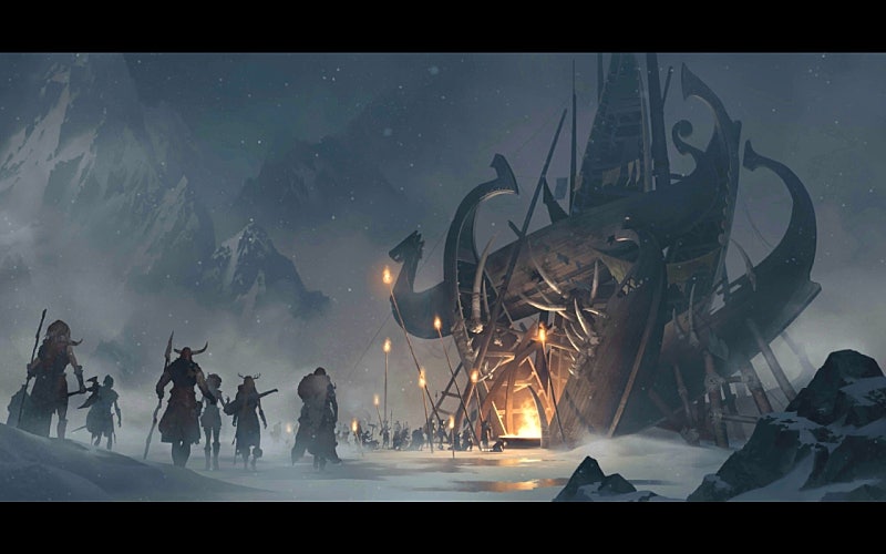 그 뒤 오른은 구름 한 점 없는 추운 세상에서 최상급 목재를 이용해 웅장한 집을 지었습니다. 무려 계곡 세 개를 잇는 크기였답니다. 바로 장엄한 뿔의 전당!