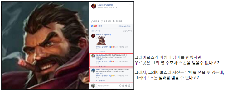 그래서, 북미 롤 유저들이 항상 페이스북에 "...그런데 그래이브즈는 담배를 가질 수 없지" 라는 농담을 하기시작합니다.