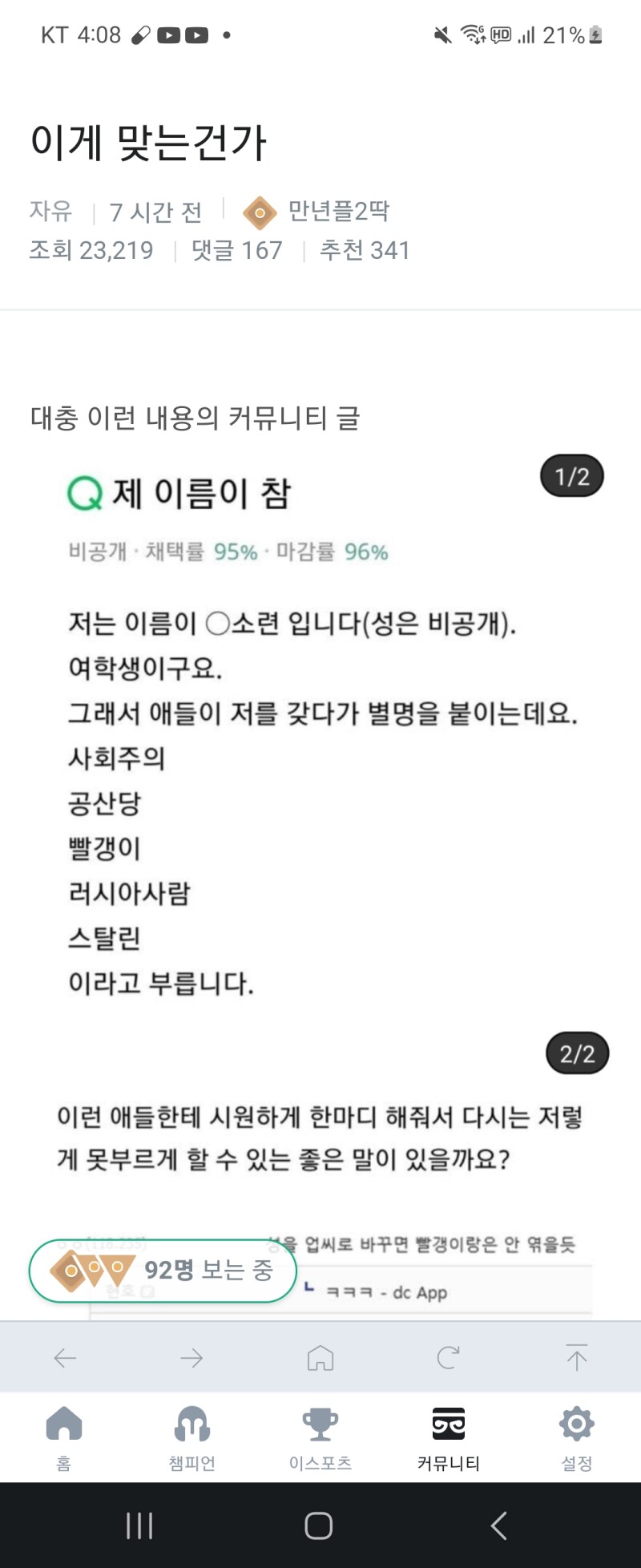 소신발언)소련 인기글 몇마디만 한다