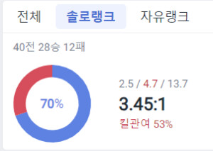 최근 40전 승률인데 이겼을떄와 졌을떄 포인트 차이가 거의 10포인트 차이네요(승리 : 16, 패배 : -28) 듀오를 한적도 없는데 왜이럴까 이게 가능한가요?