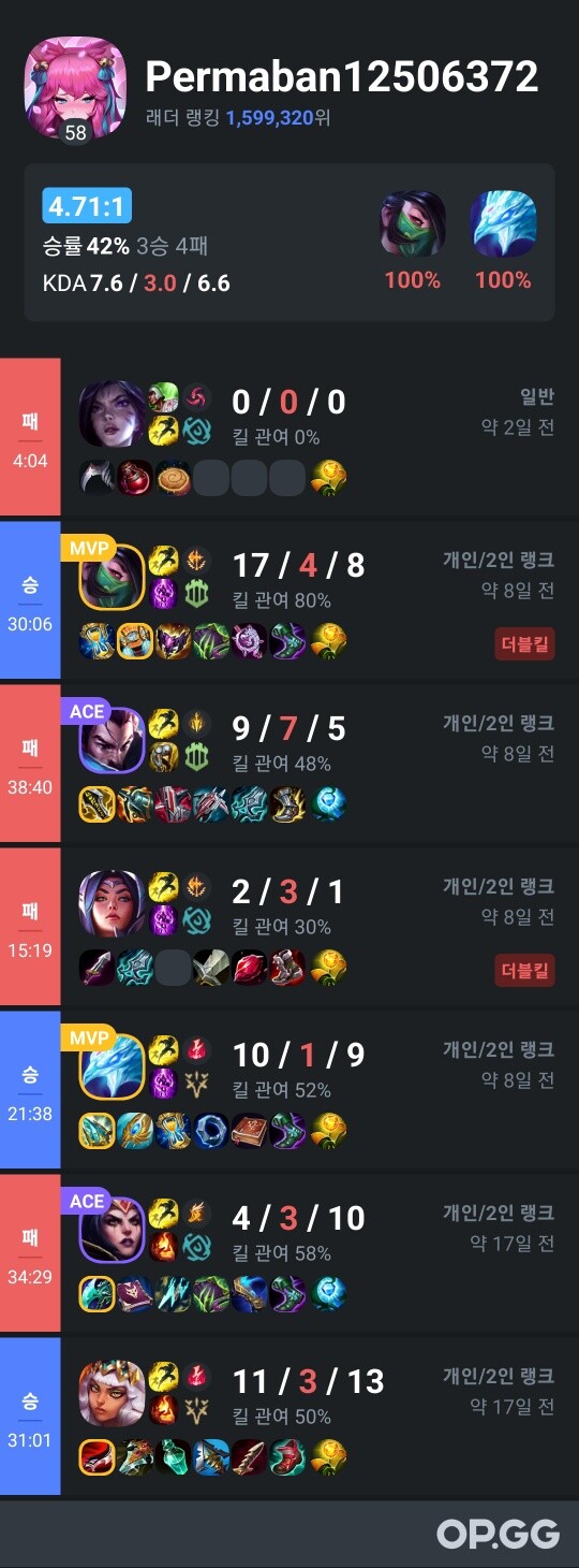 개인적으로 유추해본건데 해킹범새끼가 내 부계정으로 헬퍼든 뭐든 쓰다가 실시간으로 영정을 당했고, 그때문에 저 일반게임이 4분만에 끝난거로 예상이됨. 시간도 그렇고 상황도그렇고 퍼즐이 대충 맞아떨어짐