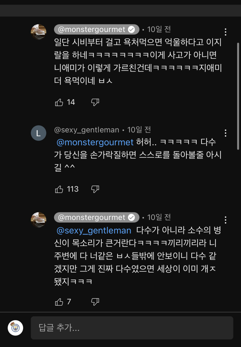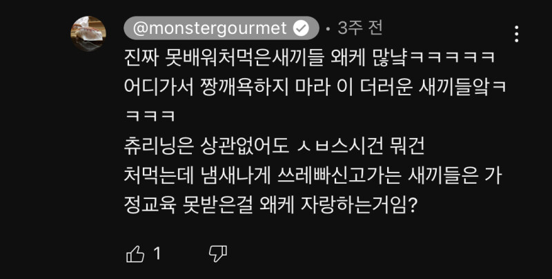 스시 오마카세 영상들 찾아보던 중 스시 기본 매너 이런 영상있길래 봤는데 오마카세 집에서도 드레스코드나 카메라 예절 이런 게 있다더라고? 신기해서 댓글 창 열었는데 ‘뭔 스시에 드레스코드냐 과유불급이다~ 오마카세 전부 물로켓이다~‘ 이런 류의 댓글이 많더라 근데 웃긴 건 유튜브 주인장 반응임 ㅋㅋㅋㅋㅌㅋㅌㅋㅋㅋㅋㅋㅋㅋㅋㅋㅋㅋ댓글창만 열었는데 주인장이 어떻게 살아왔는지 전부 보이는 마술