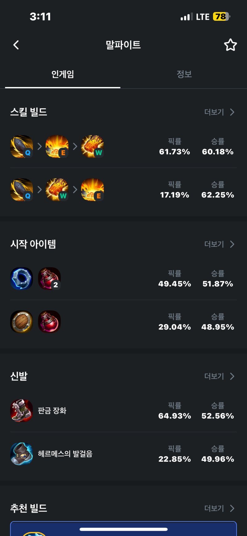 시작템이 도란링 도란방패 합쳐서 8할인데