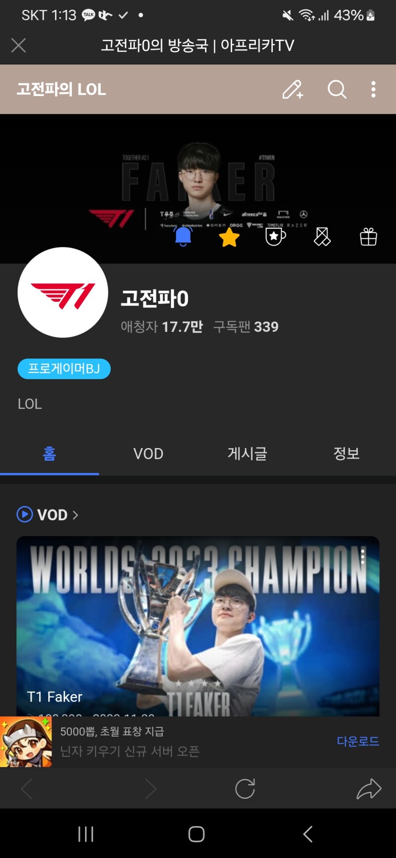 트위치 섭종해서 아프리카 주가 개떡상으로 이득본 T1멤버