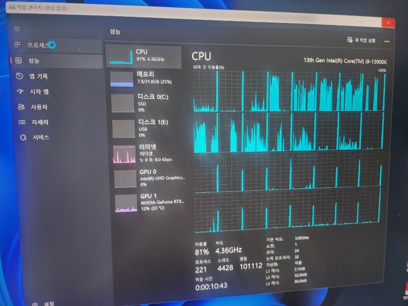 게임 픽창 이후 로딩화면 진입 전에 로딩창이 안뜨고 마우스 반응속도가 현저히 느려지며 컴퓨터가 렉이걸리고 CPU 점유율이 100 찍는 현상 ( 원인 안뜸 )