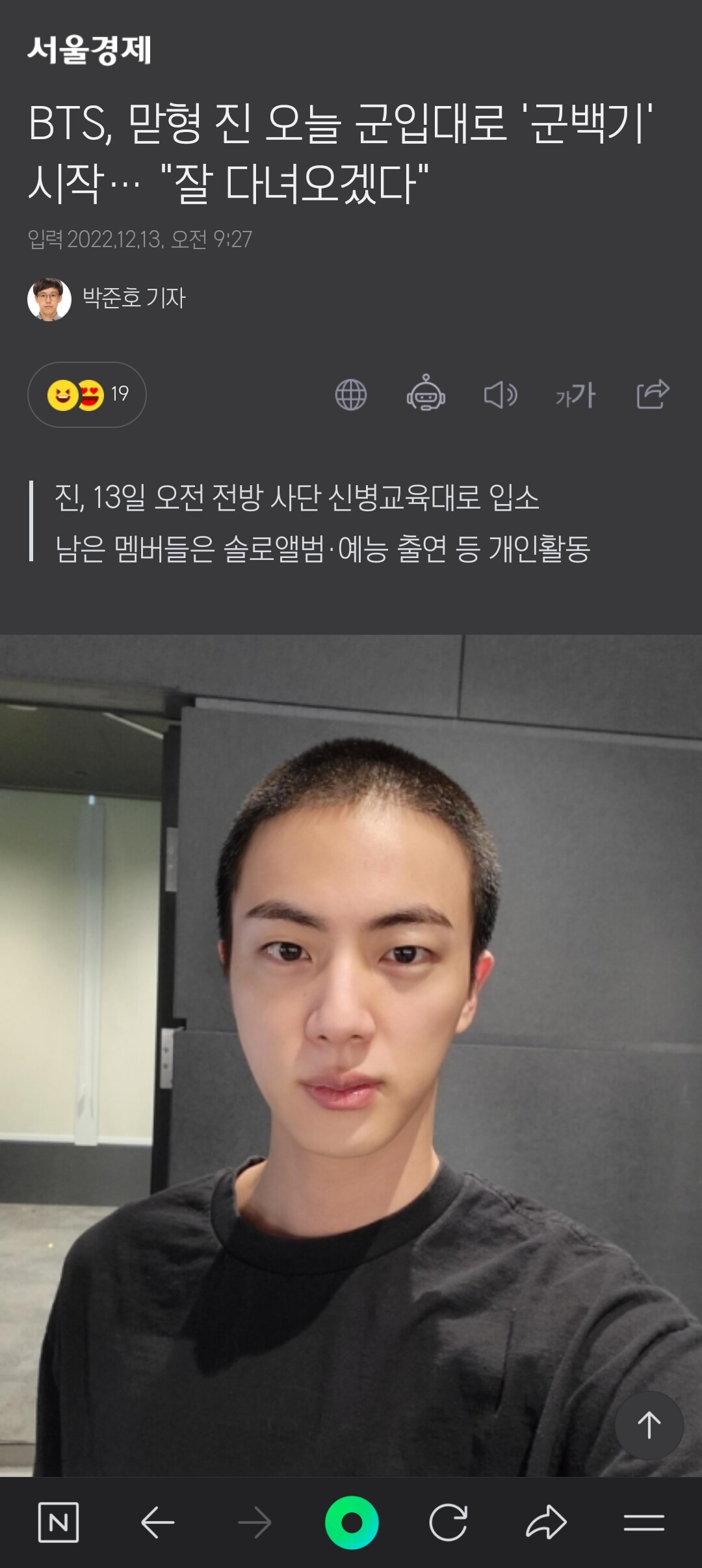 군대 간다는 BTS 진이 벌써 전역 2달남음..ㄷㄷ