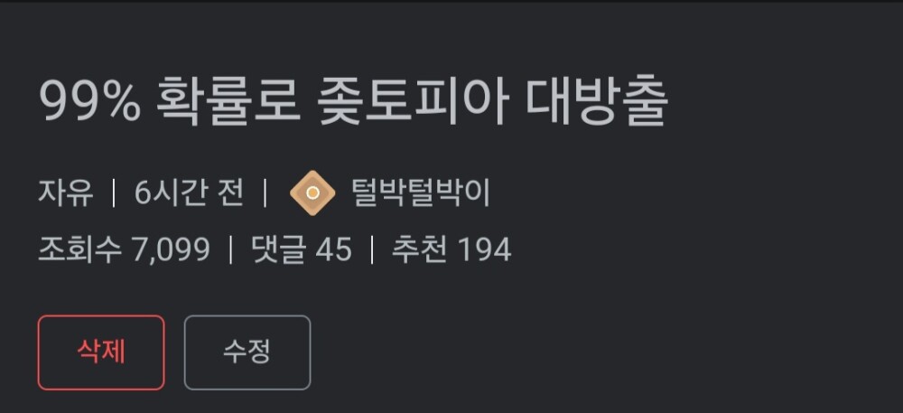 농사랑 비슷함 이런 똥글을 하나 심어놓르면 자기만 당할수 없다고 생각한 옵붕이들이 개추를 막 누름 그러면 나는 댓글에 올라오는 또다른 ㅈ같은 짤들을 수확하는거임!! 이렇게 오늘도 내 좆토피아 폴더는 한층 더 두꺼워지는거임! 이제 이걸 반복하면? 나는 ㅈ같은짤 부자가 될수있음!!