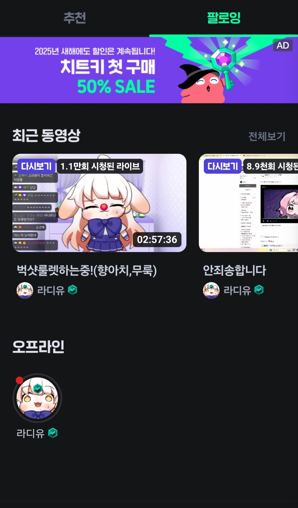 제 치지직 팔로윙엔