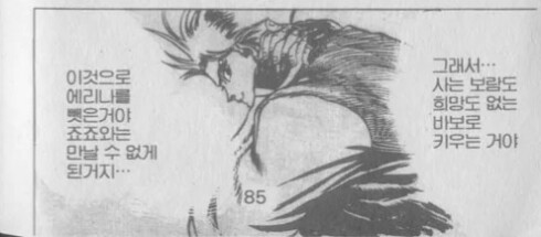 원본 죠죠의 마음 속에 사막을 만들기 위해 결단코 놈이 친구나 연인을 만들도록 놔두지 않겠어! 삶의 보람이 사라진 놈은 얼간이가 되고 말겠지!