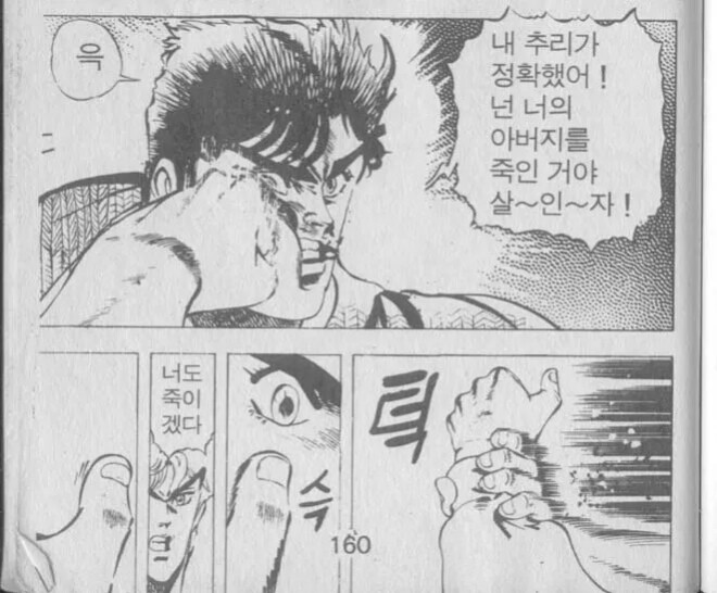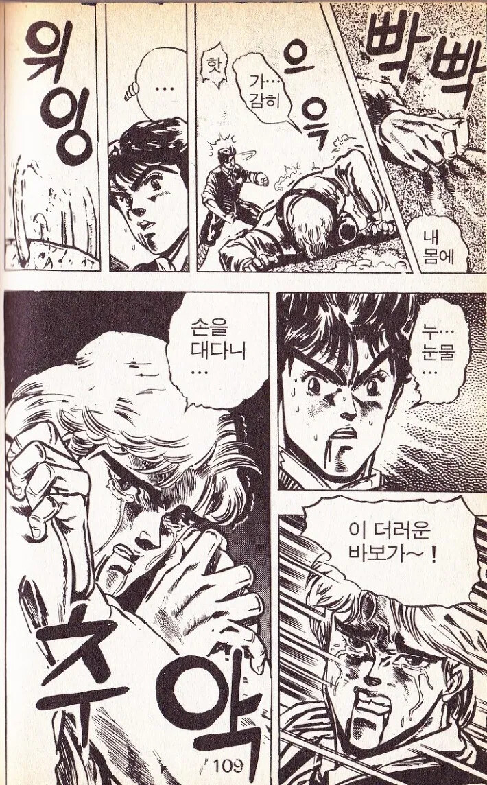 원본 디오: 가, 감히... 감히, 감히 내게 맞서다니... 죠나단: 누, 눈물... 디오: 이 추저분한 쓰레기가─!!